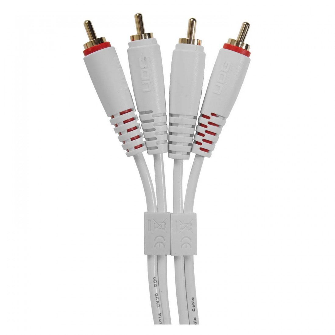 UDG Ultimate Audio Cable Set RCA-RCA 1.5 White Straight es un cable de 1,5 metros de longitud con conectores termosellados 2 RCA macho a 2 RCA macho. Funcional para mesas de mezclas, reproductores de CD, platos giradiscos, interfaces de audio DJ, altavoces, monitores de estudio...