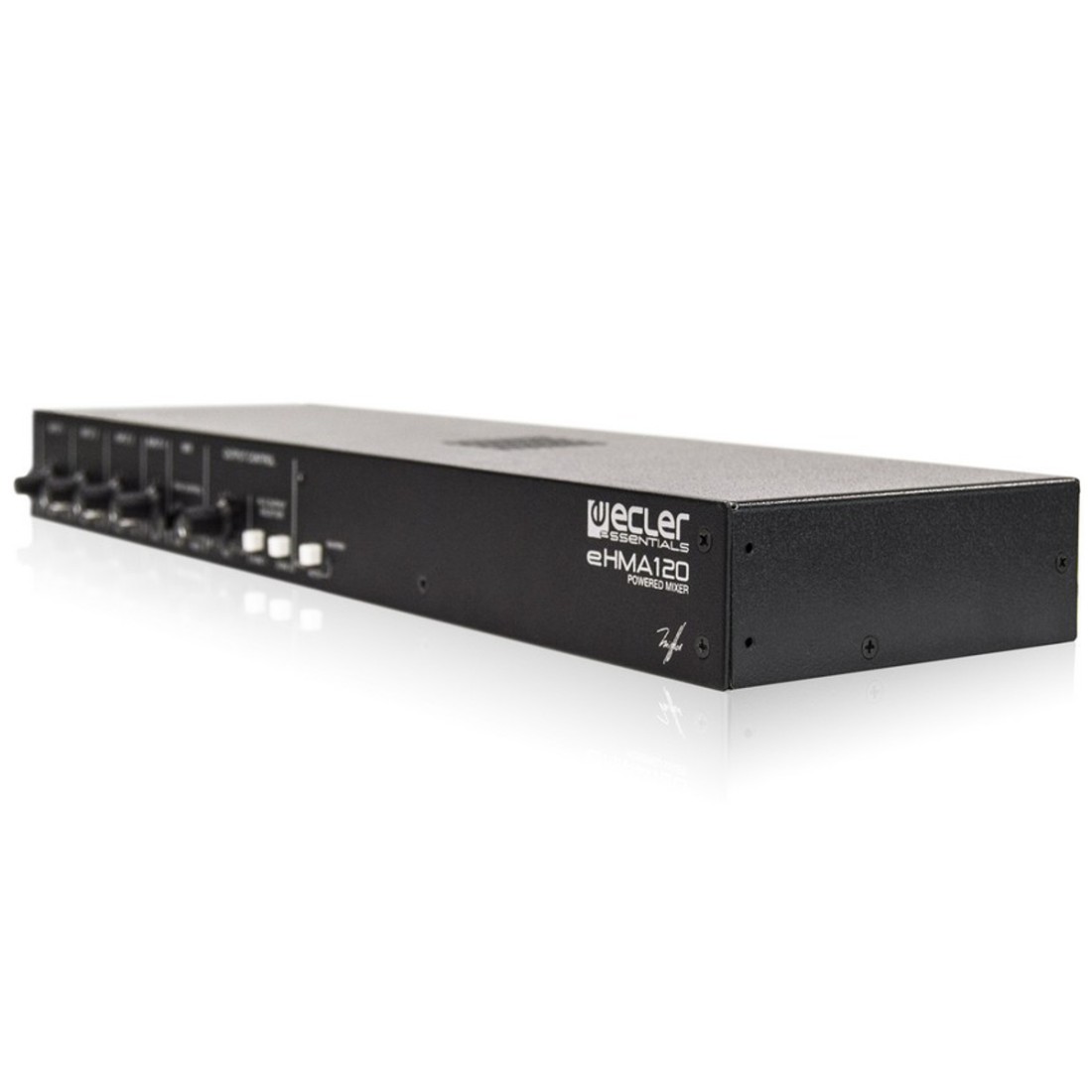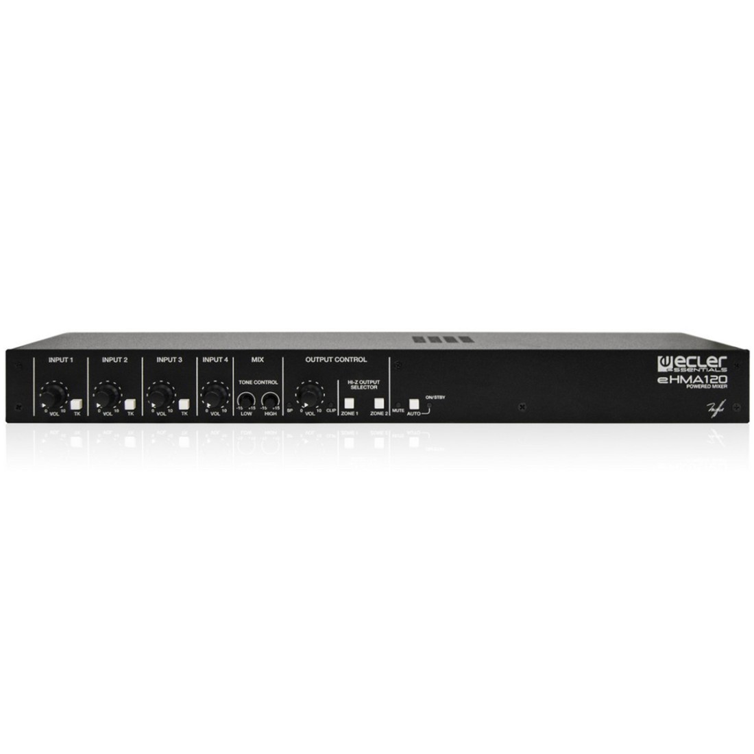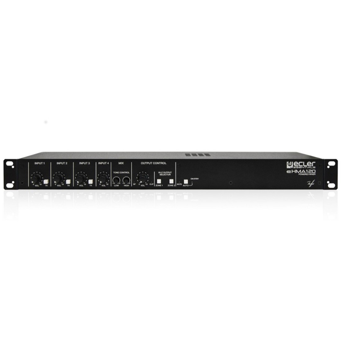 El Ecler eHMA120 es un mezclador-amplificador. Que cuenta con tres entradas estéreo MIC/LINE (micrófono/línea), una entrada estéreo LINE y una salida mono. Está preparado para líneas de altavoces de baja impedancia (4 ohmios) y alta impedancia (70V, 100V), incluyendo selectores ON/OFF para 2 zonas de salida (ZONE 1/ZONE 2) con altavoces sobre línea de alta impedancia.
