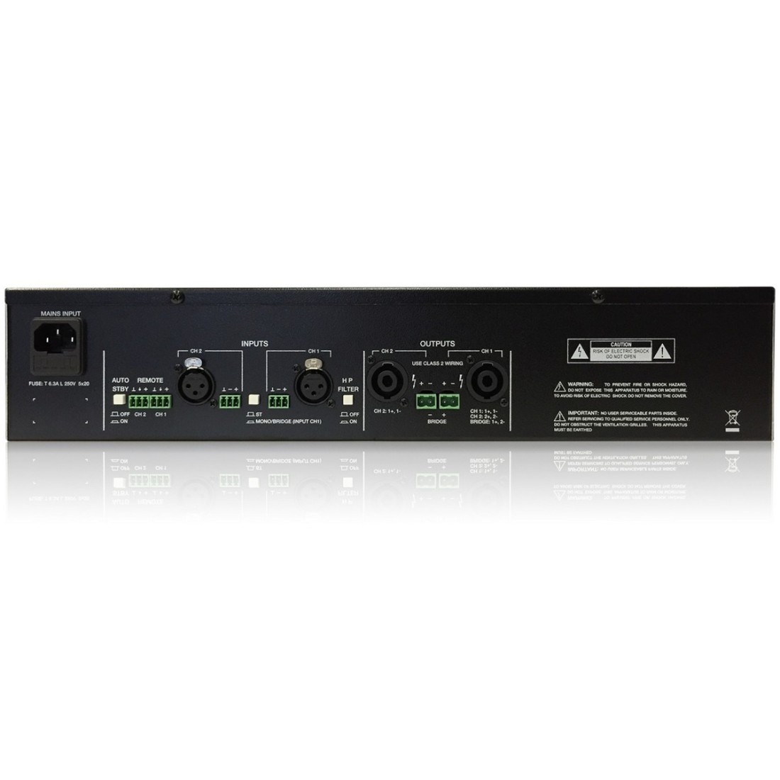 El Ecler GPA2-400ES. Potencia, versatilidad y control se fusionan en este amplificador, con una potencia de 2x350W a 4 ohmios (o 2x280W a 8 ohmios), este amplificador de dos canales es la elección inteligente para sistemas de sonido profesional y megafonía. Su amplio rango de frecuencia, que alcanza los 40kHz, y su filtro RF conmutable garantizan un sonido limpio y nítido en todo momento.