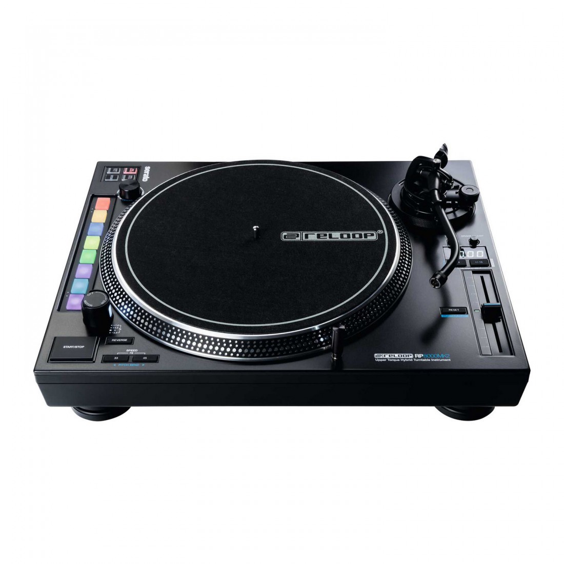 - Plato giratorio híbrido Reloop RP-8000 MK2 con motor de alto par y control MIDI.
