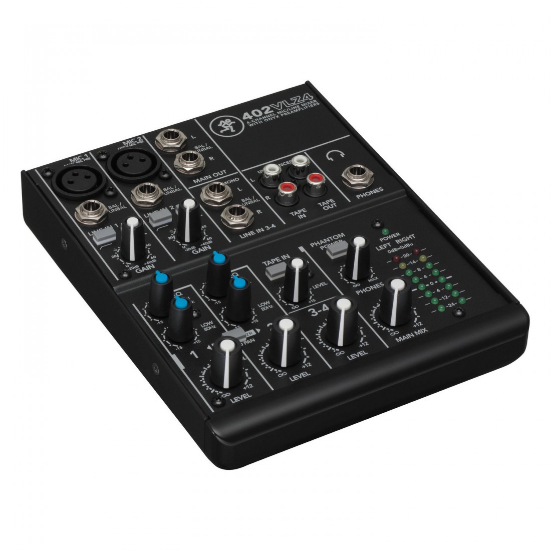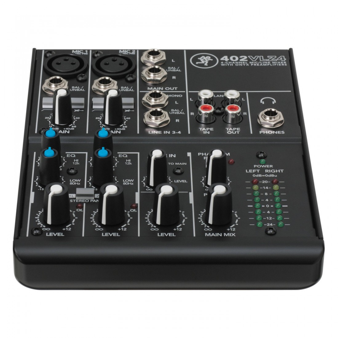 Mezclador analógico compacto de 4 canales Mackie. Mackie 402VLZ4 ofrece un diseño ultra compacto, gran resistencia y un rendimiento de audio profesional con mínimo ruido y máximo margen dinámico, ideal para estudios, retransmisiones y aplicaciones móviles.