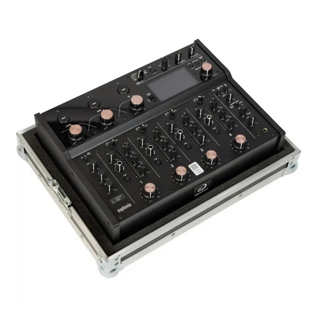 Maleta profesional Walkasse para mezclador Alphatheta® EUPHONIA. Maleta DJ profesional fabricada en España con madera contrachapada de abedul finlandés, diseñada para ofrecer máxima protección y transporte seguro de tu mezclador. Incluye trolley extraíble, ruedas y compartimento para accesorios.