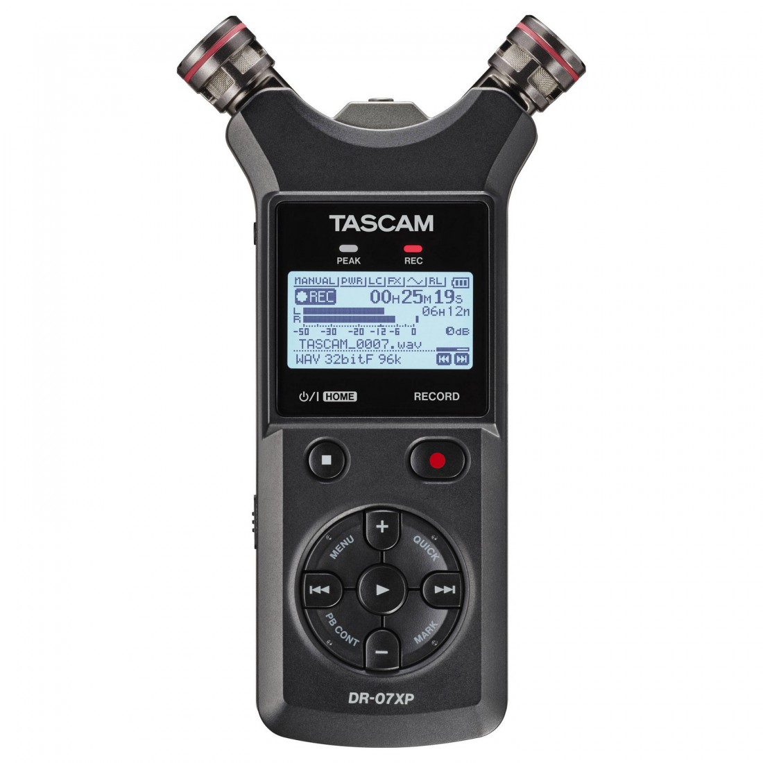 La TASCAM DR-07XP és una grabadora portátil de 2 canals amb gravació de 32 bits flotants i micròfons de condensador ajustables. Ideal per a gravacions professionals en qualsevol entorn, inclou una interfície USB-C i fins a 17,5 hores de gravació amb piles alcalines.