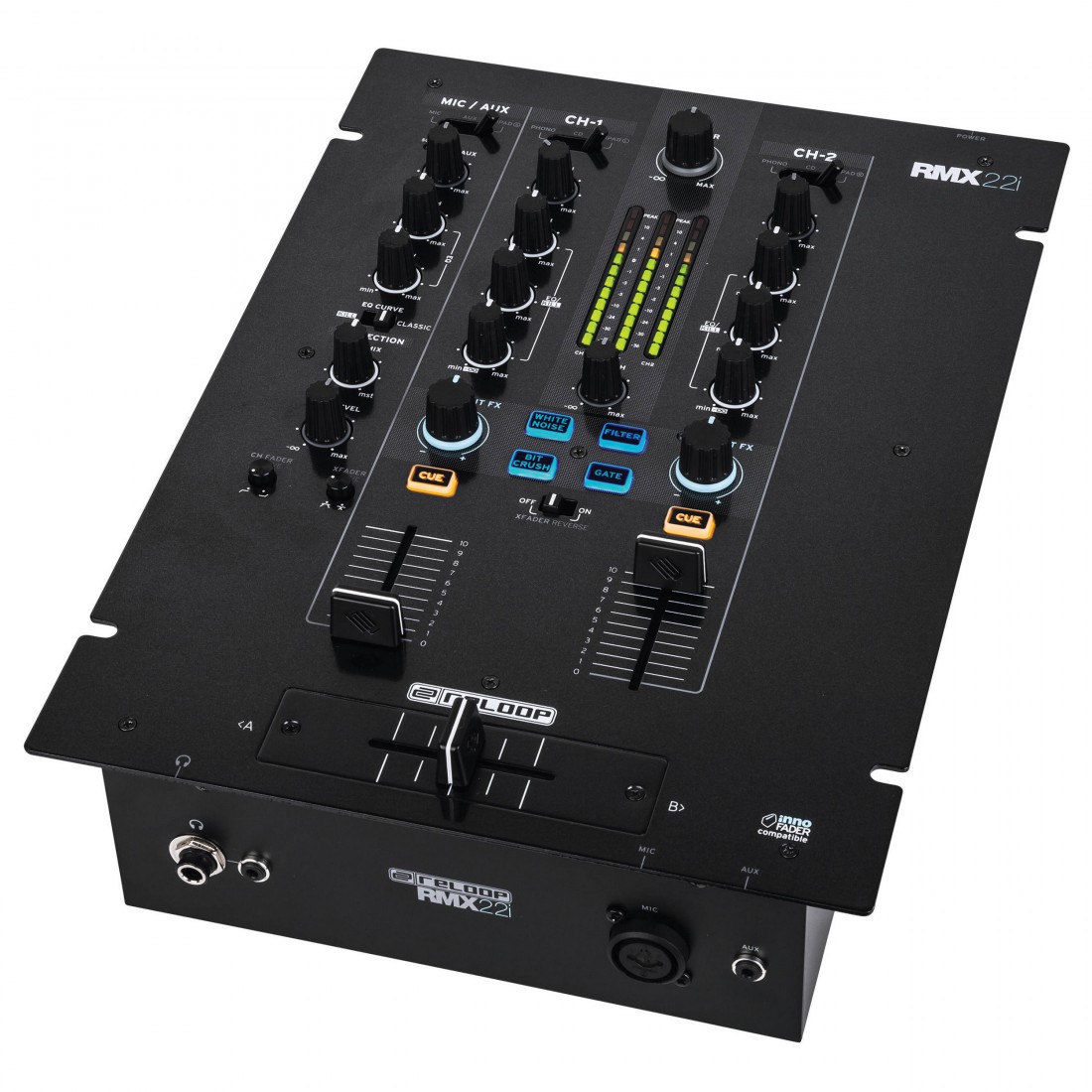 Mezclador digital de DJ de 2 canales con efectos integrados. El Reloop RMX-22I es un mezclador compacto y versátil diseñado para DJs que buscan calidad de sonido profesional con una arquitectura digital de 2 (+1) canales. Equipado con un procesador de efectos integrado y compatibilidad con múltiples dispositivos, este mezclador permite una gran flexibilidad en cualquier configuración de DJ. Su entrada dividida para smartphones y tablets lo convierte en una opción ideal para sets dinámicos y conexión con música en streaming.