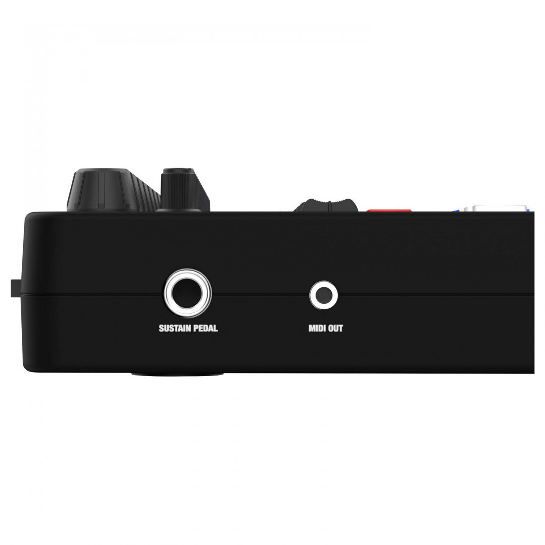 - Salida MIDI de 3,5 mm y entrada para pedal de sustain de 6,3 mm.
