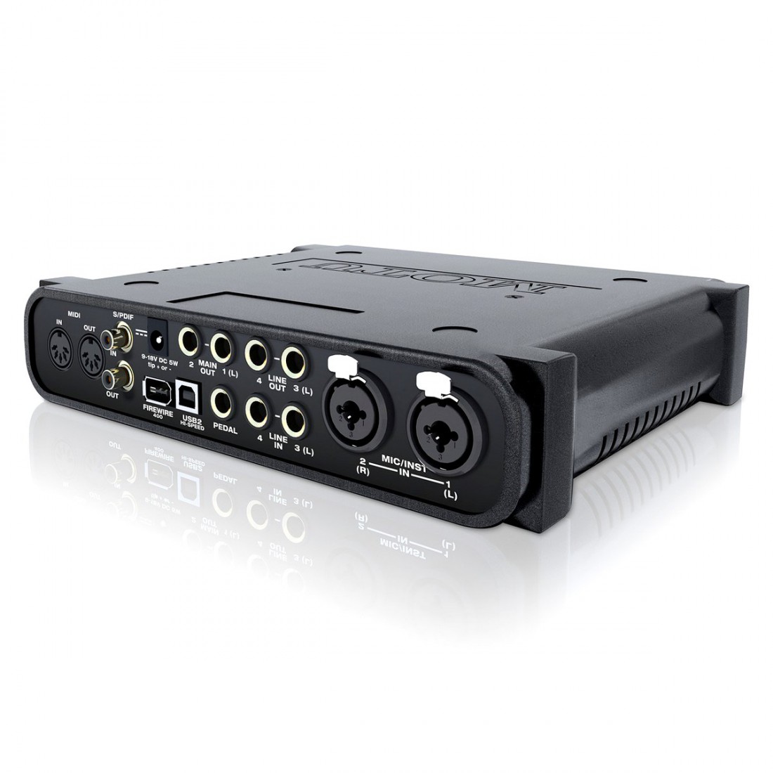 Interface de Audio por USB/FireWire de MOTU. Conectividad híbrida USB 2.0/FireWire 400. Resolución 24-bit/96kHz. 6 Entradas. 6 Salidas. Entradas: 2 Mic/Inst (Combo) con alimentación Phantom 48V, 2 Line (Jack), Pedal (Jack) y Digital S/PDIF (RCA)