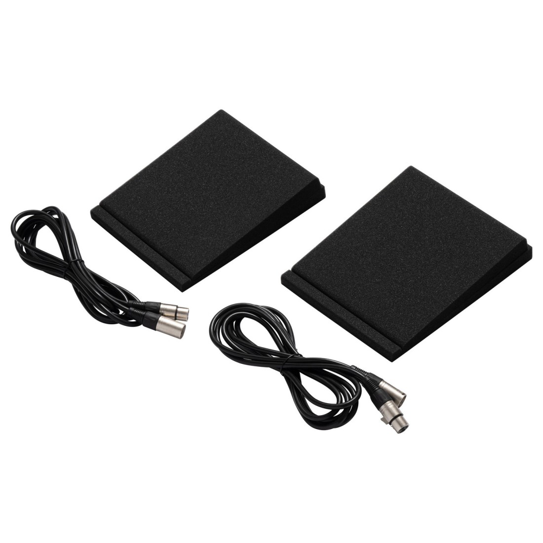 - Incluye 2 pads isoladores con cuña y 2 cables XLR/M a XLR/H de 3 metros.