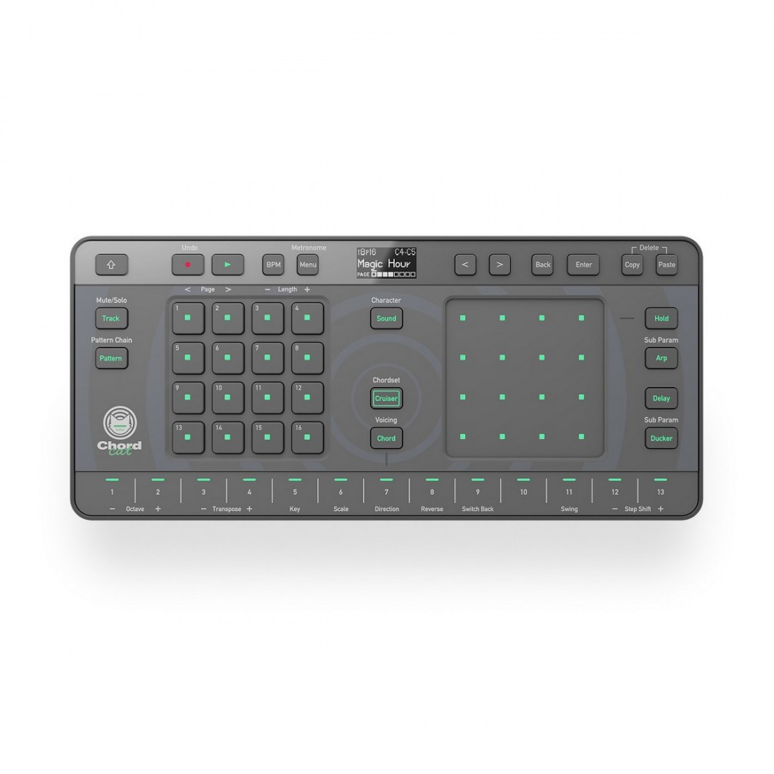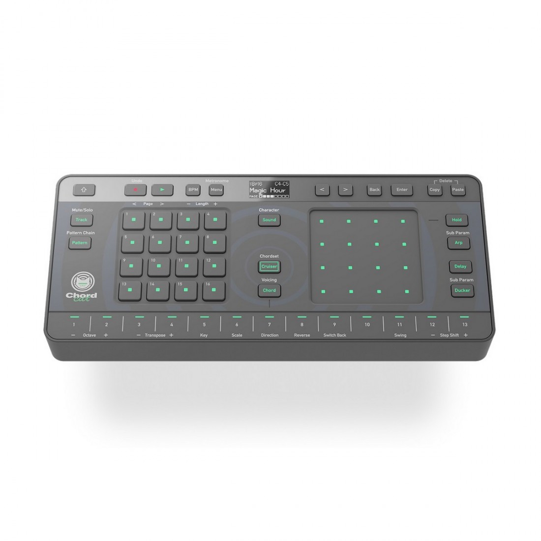 AlphaTheta Chordcat es una herramienta innovadora para músicos y productores que buscan inspiración instantánea. Gracias a su exclusivo modo Chord Cruiser, es capaz de generar hasta 110.000 combinaciones de acordes compatibles con una tonalidad y escala definidas. Cuenta con efectos integrados como arpegiador, retardo y ducker, junto a un secuenciador de 8 pistas, 16 patrones y 128 pasos. La conectividad MIDI/USB de AlphaTheta Chordcat permite integrarlo fácilmente con sintetizadores externos y DAWs. Además, su diseño ligero y plano lo convierte en el compañero ideal para la creación musical en movimiento.