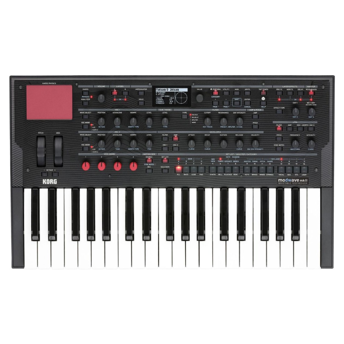 El Korg Modwave MkII es un sintetizador de tabla de ondas digital con un teclado de 37 teclas sensibles a la velocidad. Este sintetizador es capaz de producir una amplia gama de sonidos, desde el clásico analógico hasta el complejo digital. El Modwave MkII introduce la Física Kaoss, que transforma los gestos en texturas musicales intrincadas.