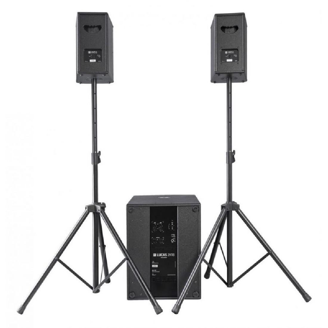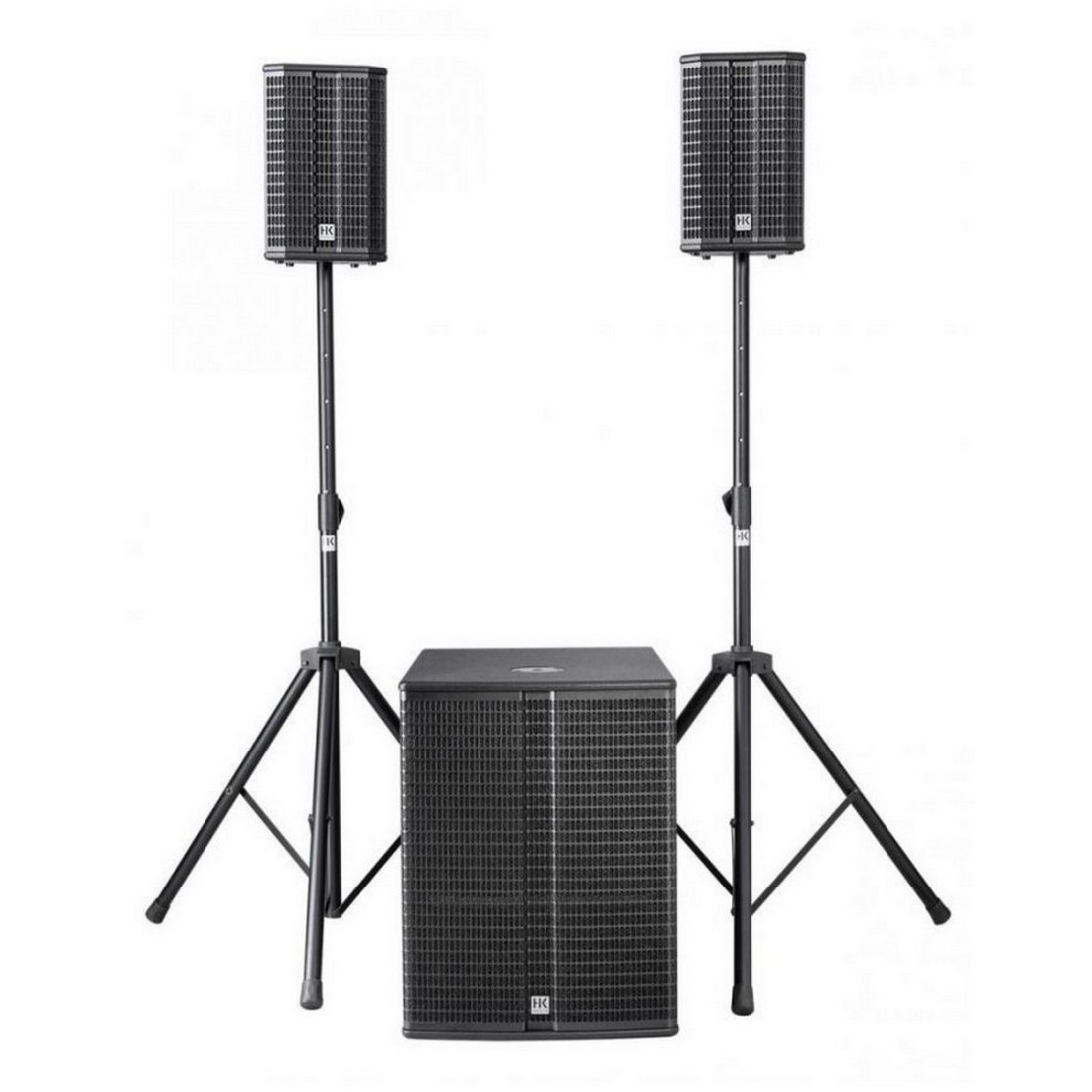 Equipo de sonido completo para DJ móviles: sistema de PA autoamplificado portátil. Incluye 1 subgraves autoamplificado y 2 satélites. Optimizado para uso estéreo 2.1. Combina alta calidad de sonido, potencia y detalle.